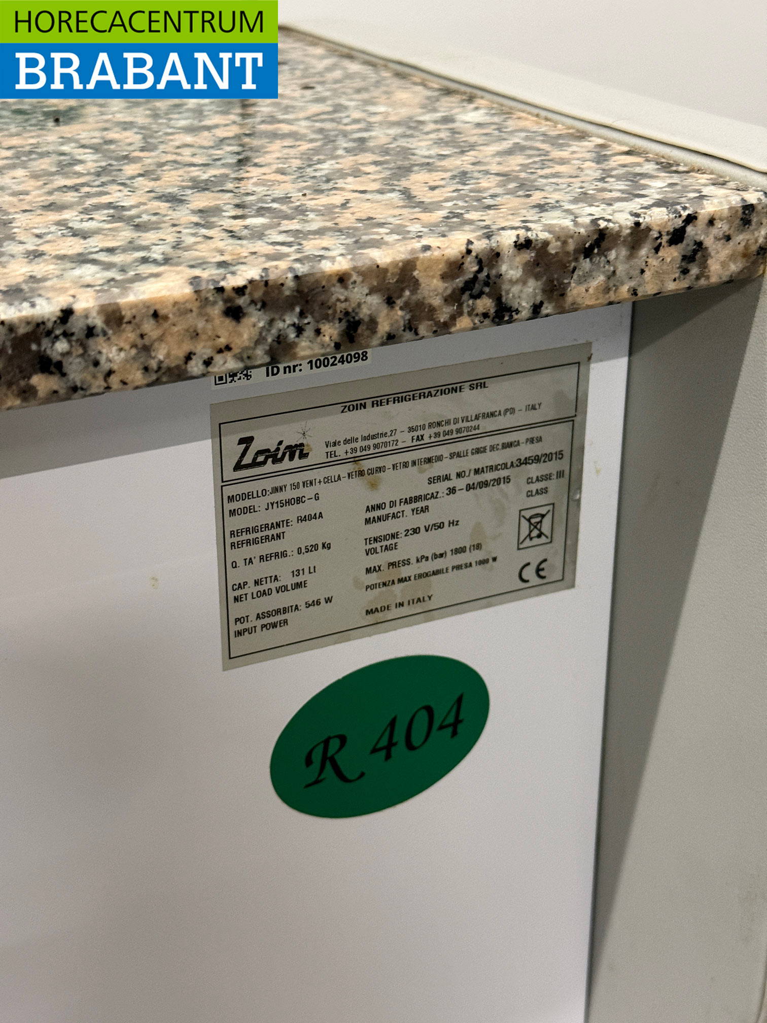 – Refrigerant: R404a