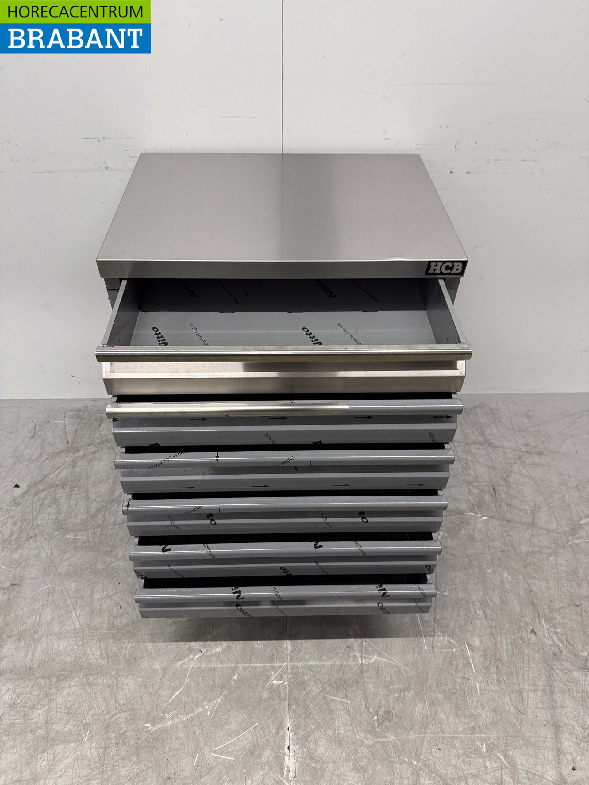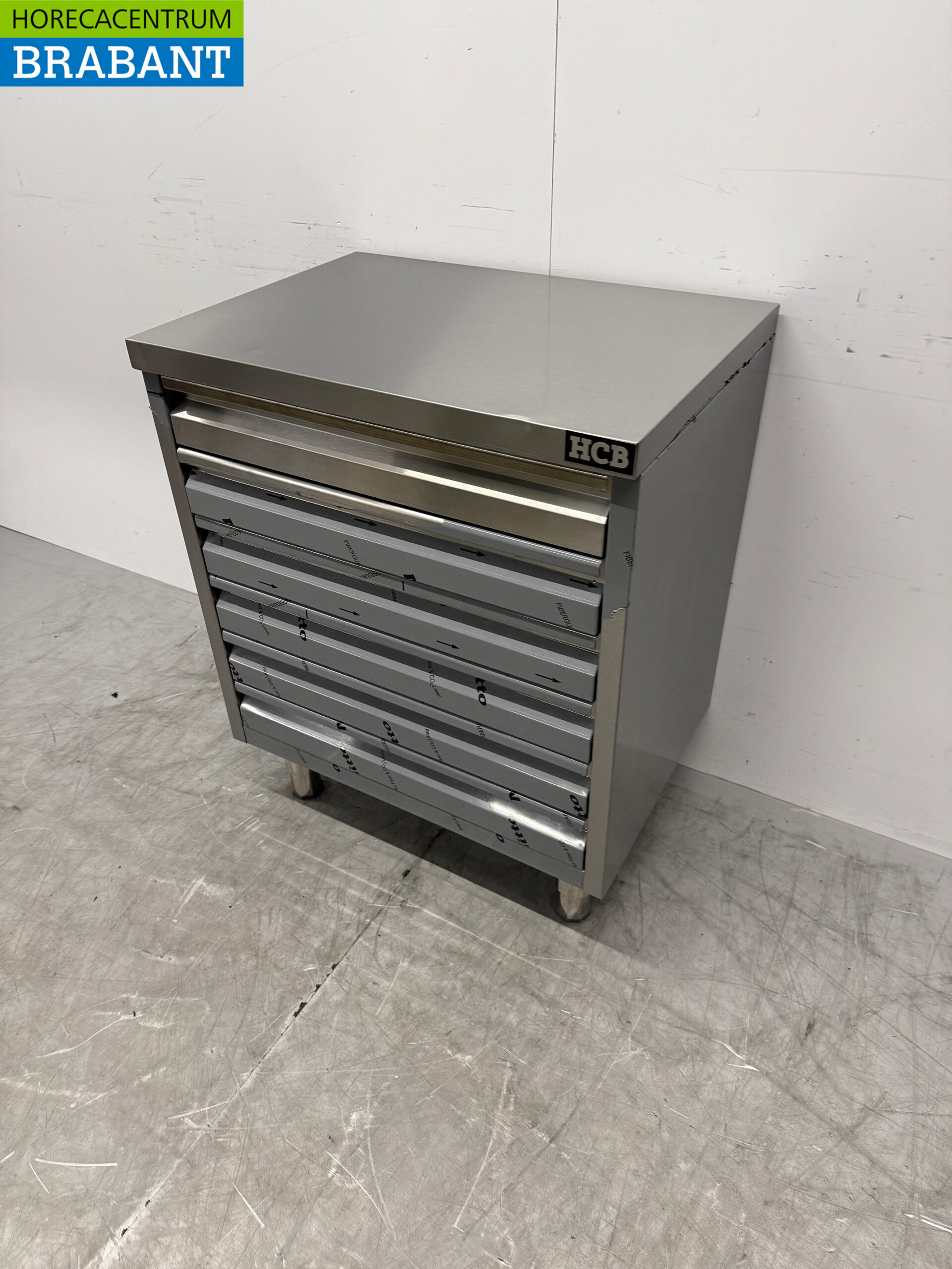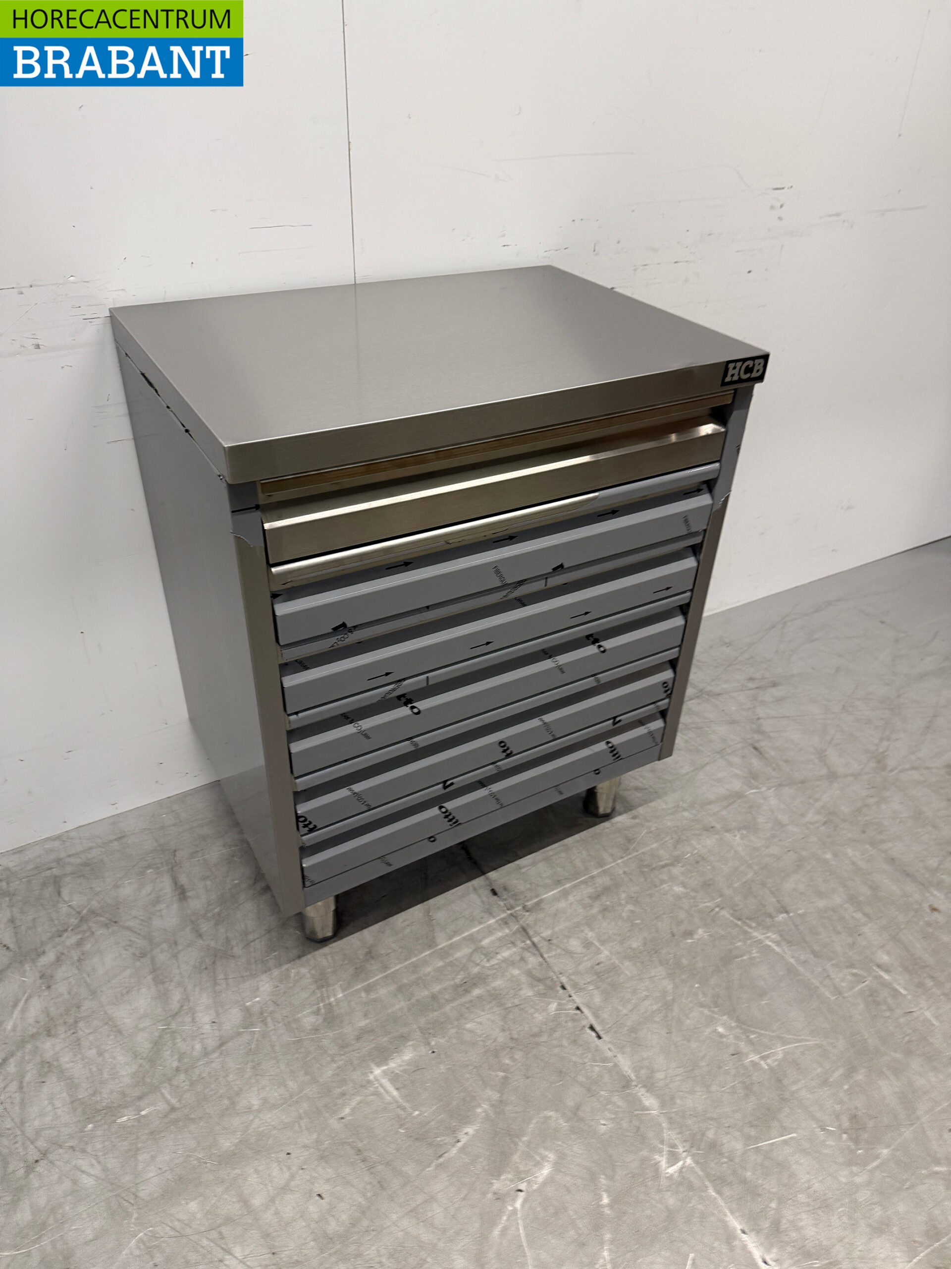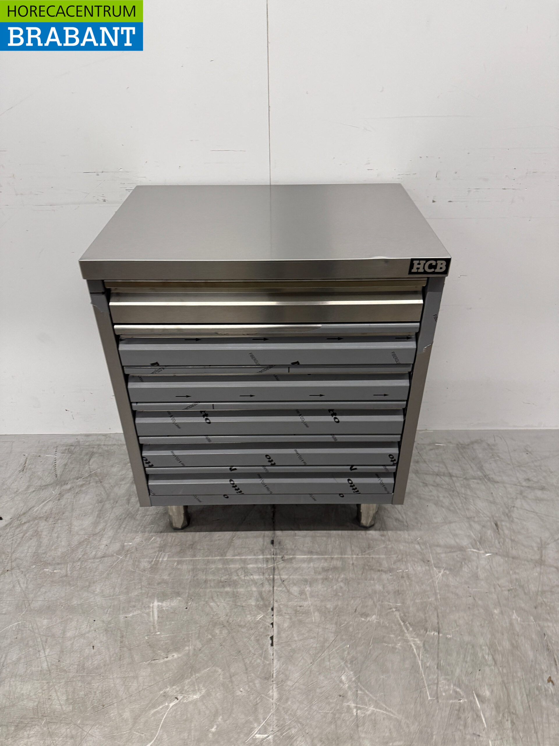 The HCB Premium-line Stainless Steel Work Cabinet is a high-quality work table with six practical drawers, ideal for professional use in kitchens, bakeries and pizzerias. The sturdy stainless steel construction makes this cabinet perfect for storing dough balls, pizza balls and other ingredients, while the work surface provides additional work space.