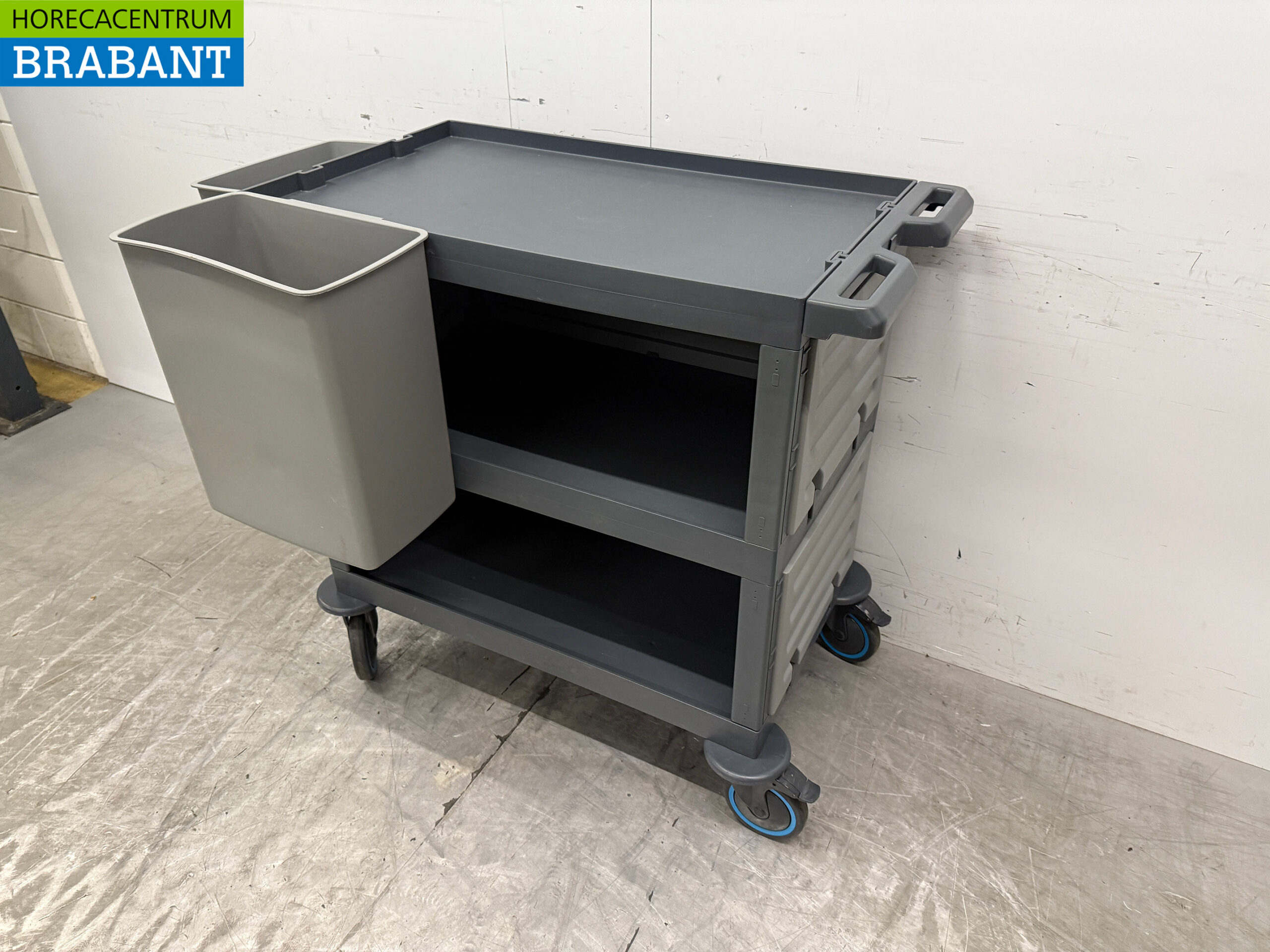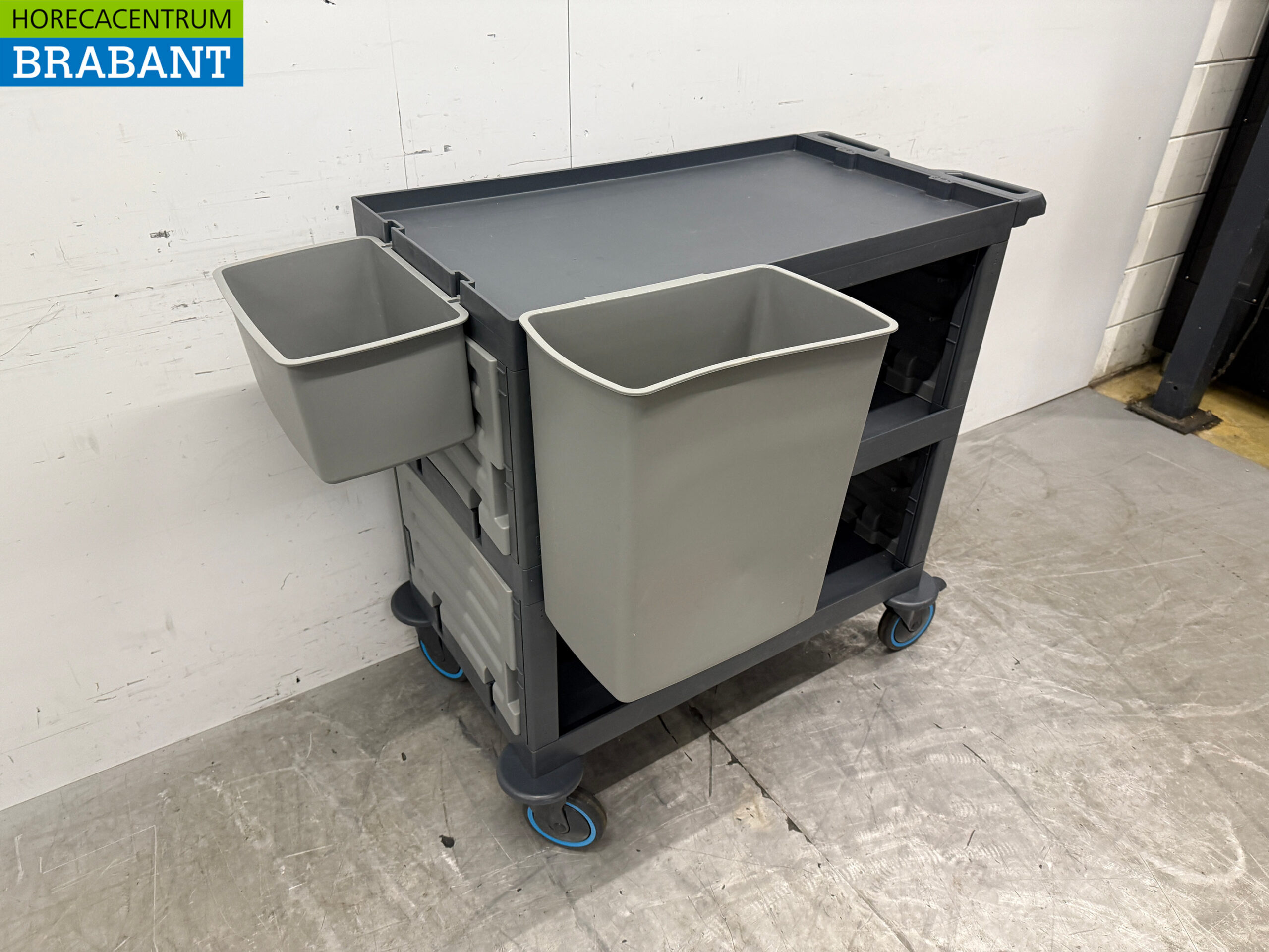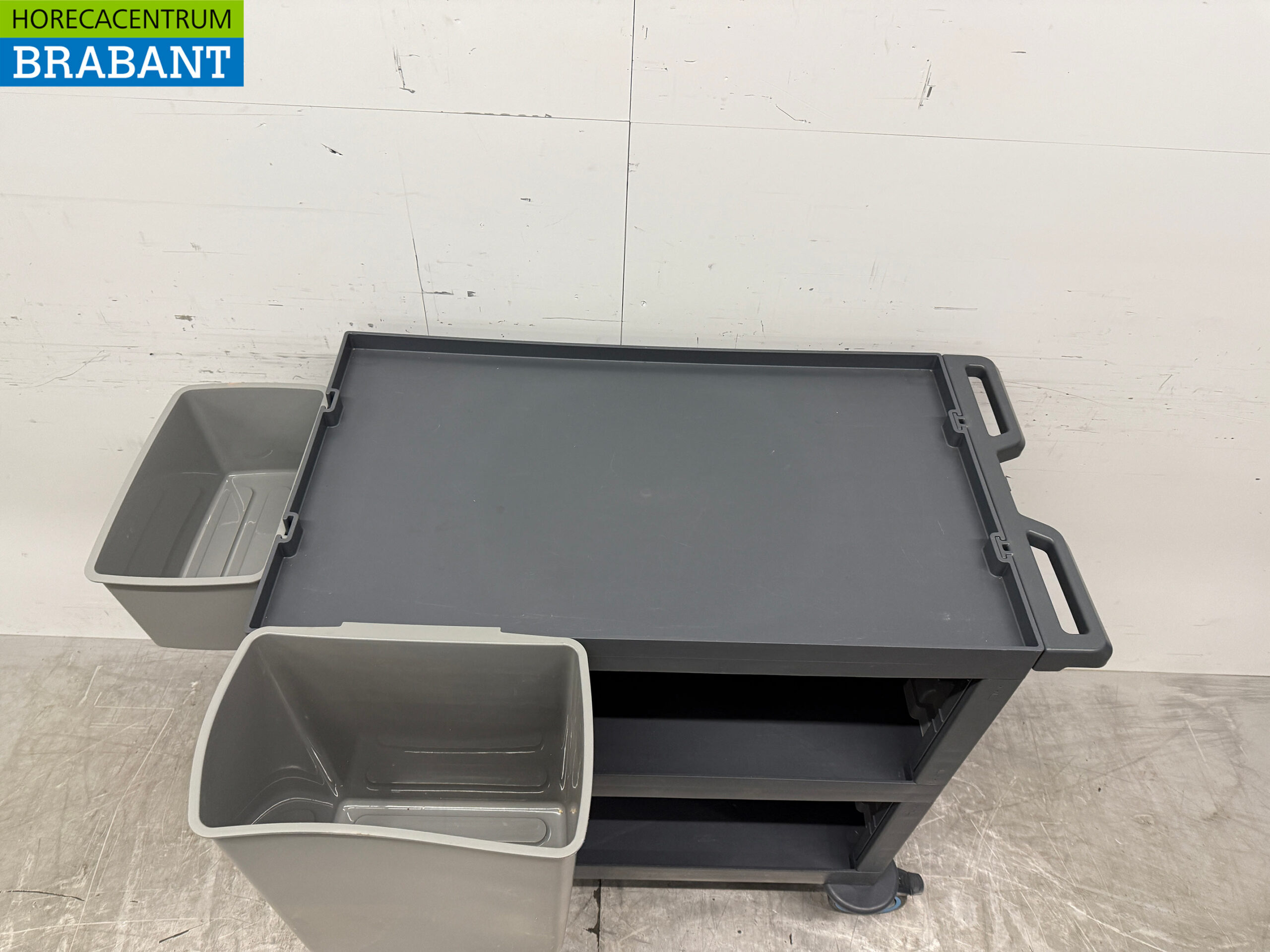 Incl. 3 shelves, 1x 30 liter waste garbage can, 1x 10 liter cutlery bucket