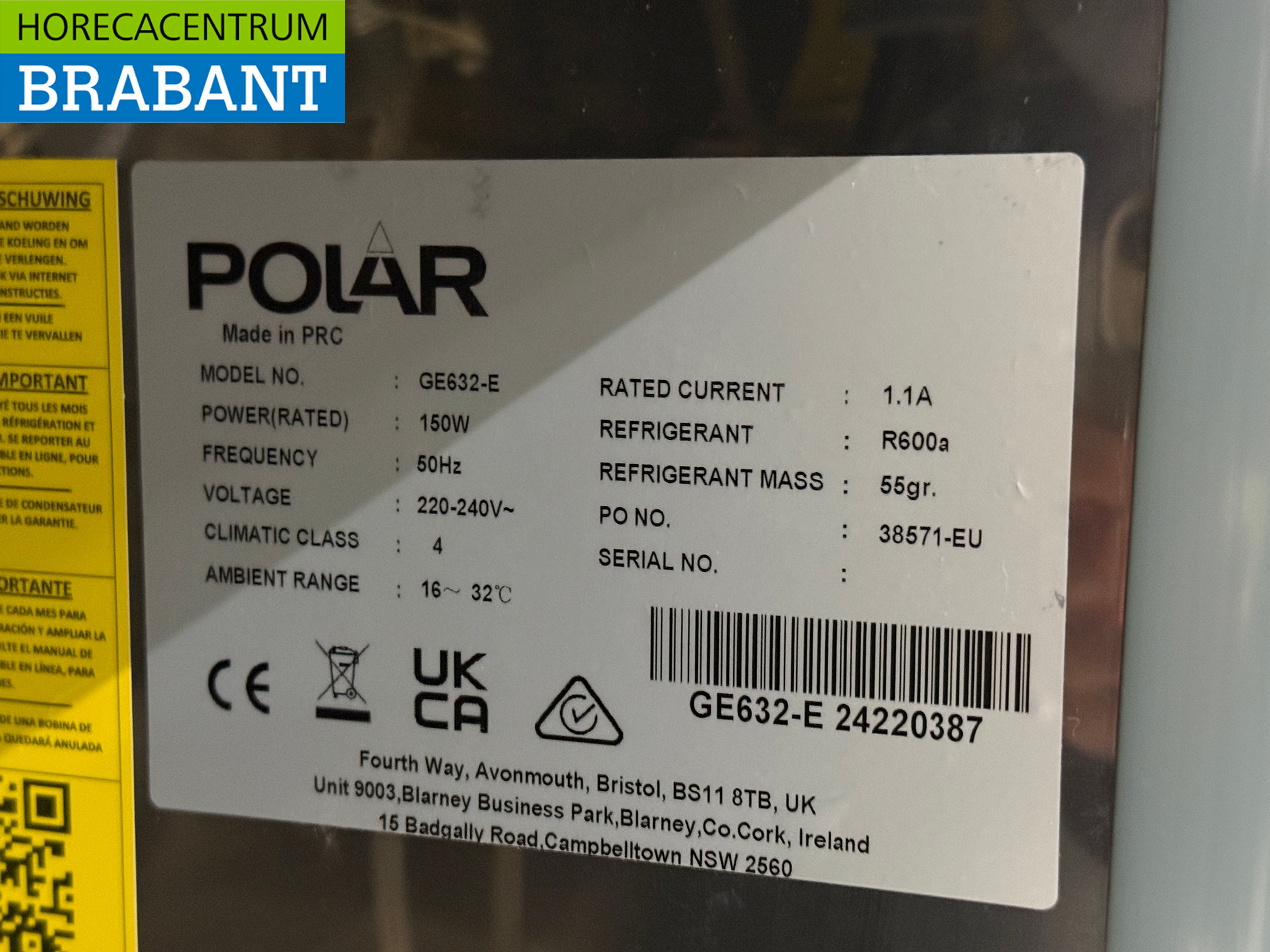 – Refrigerant: R600a
