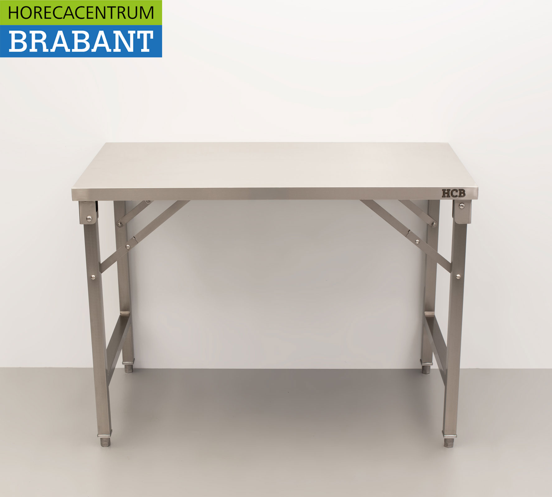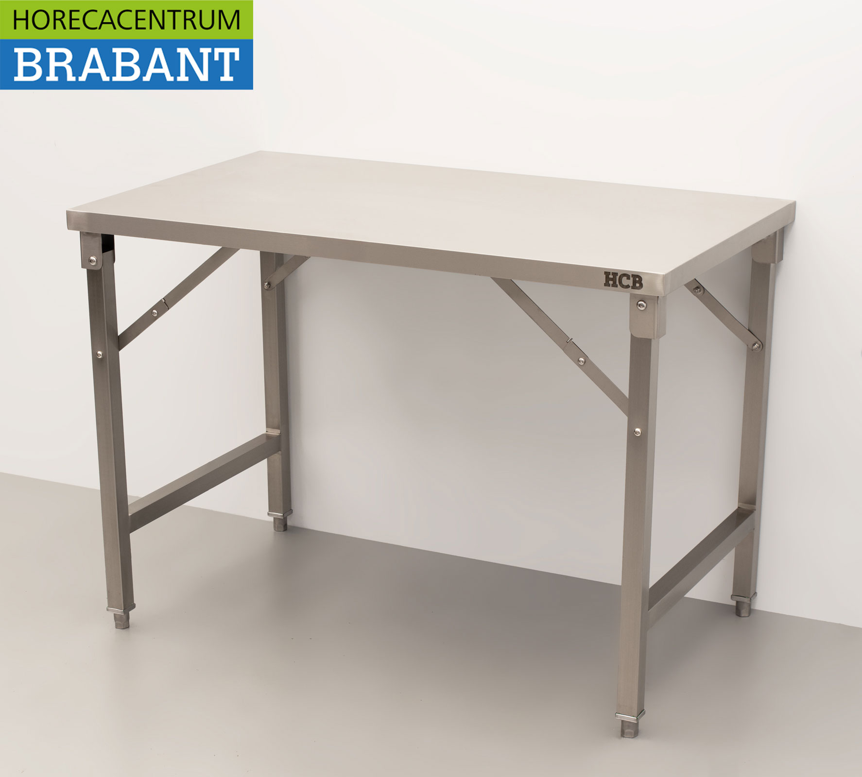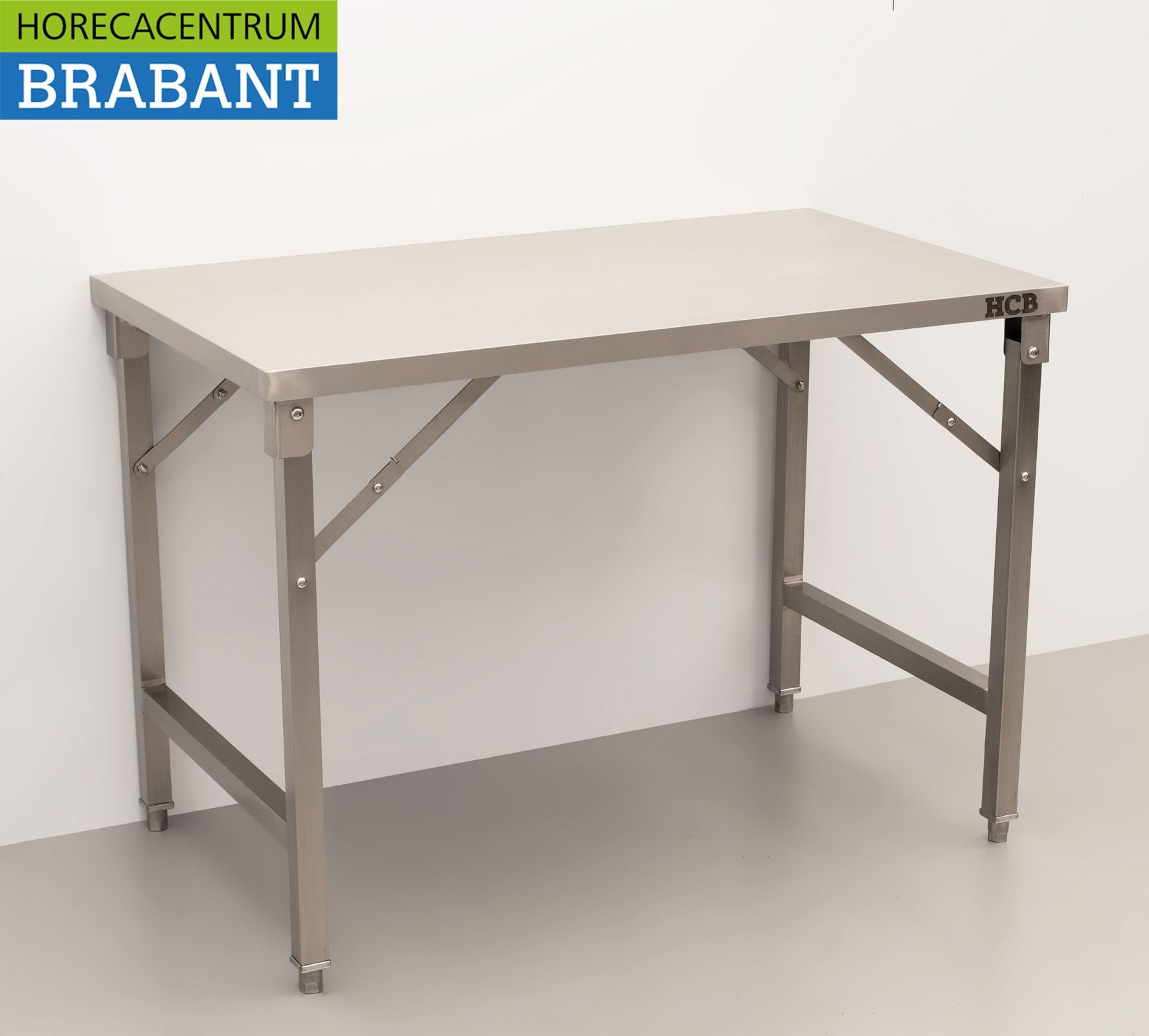 HCB’s collapsible stainless steel work table is a practical and space-saving solution for professional kitchens, catering and events. The table is easy to fold and store when not in use. Thanks to the adjustable legs, the working height can be easily adjusted to the desired situation, ensuring optimal ease of use.
