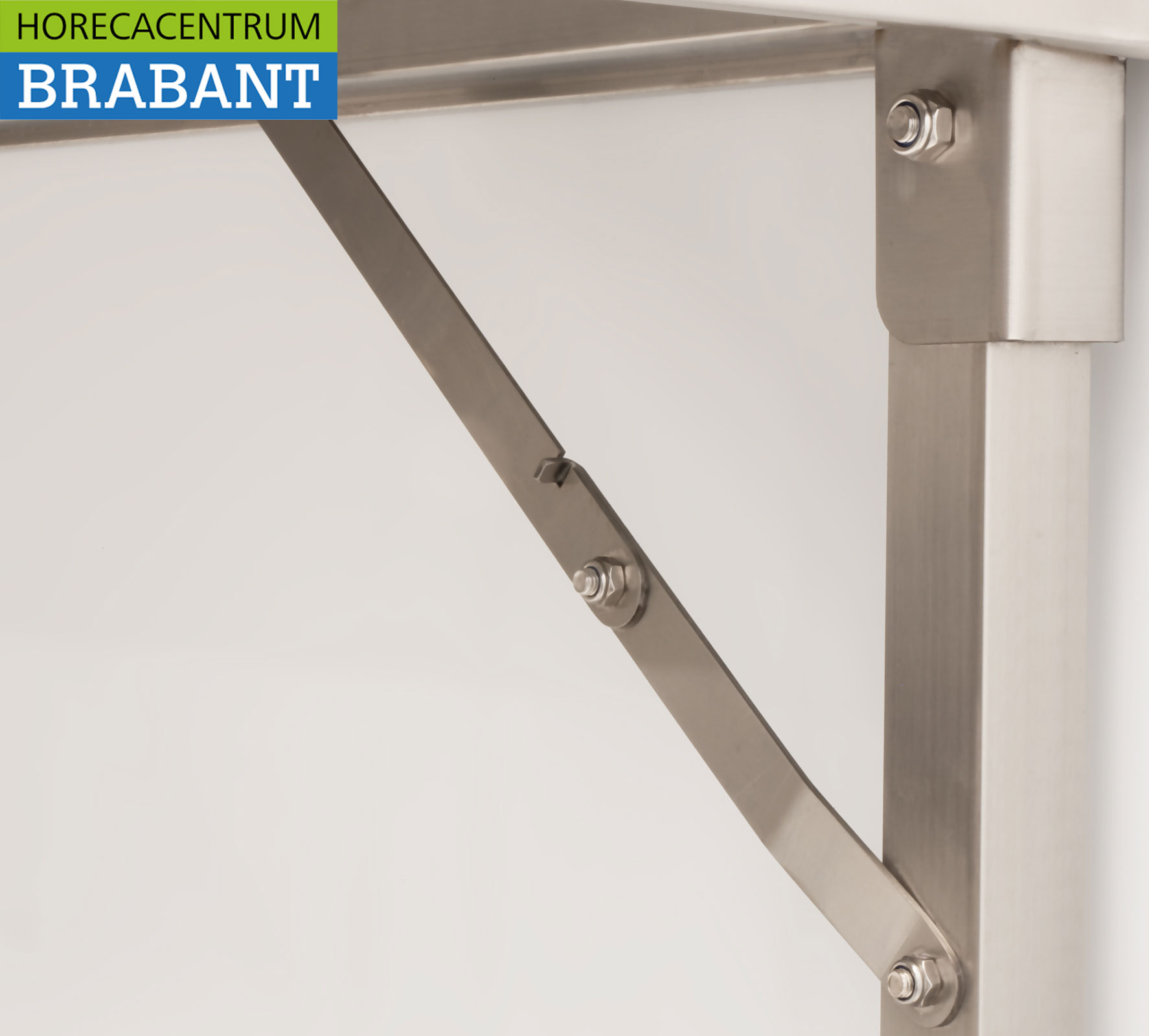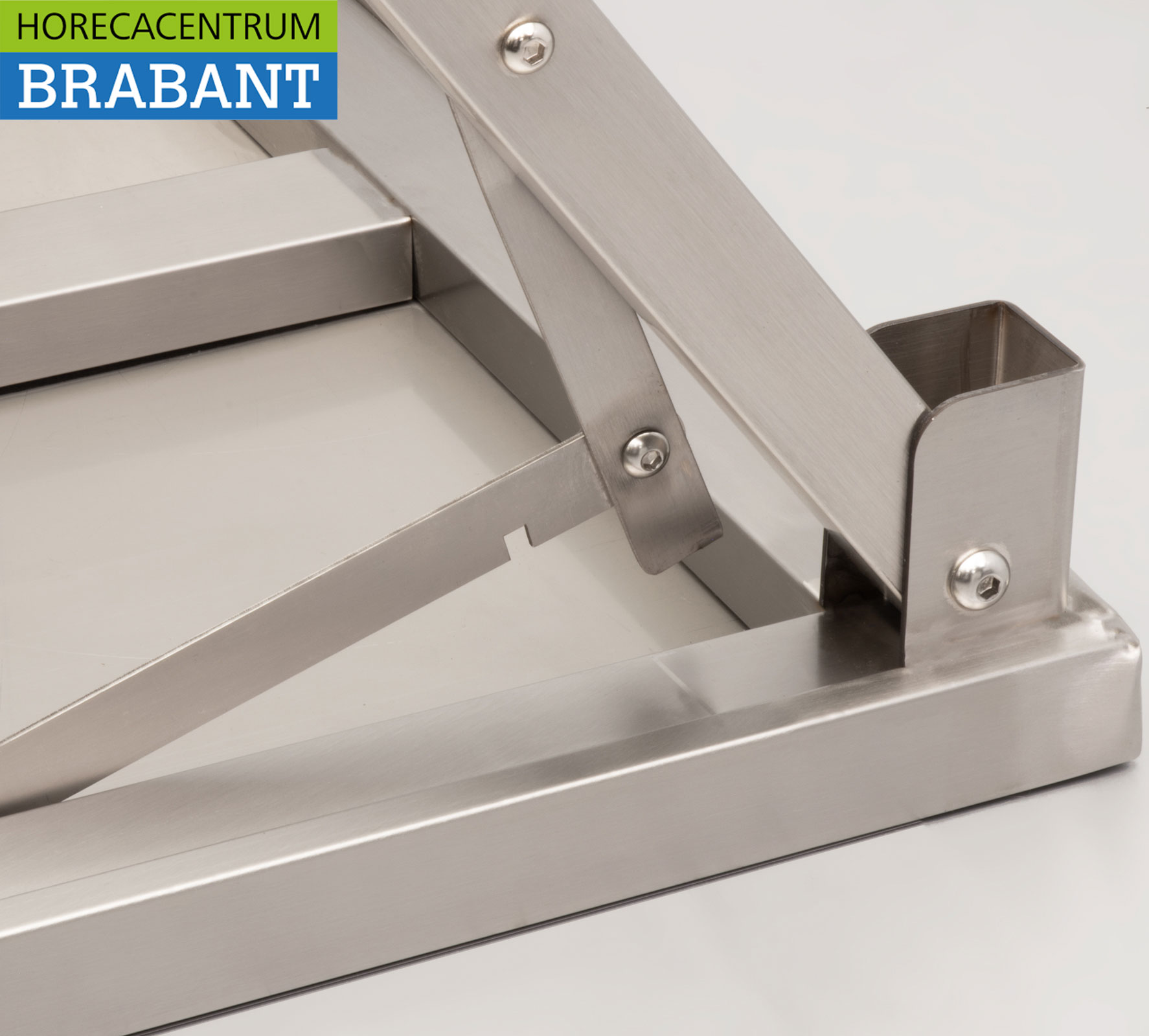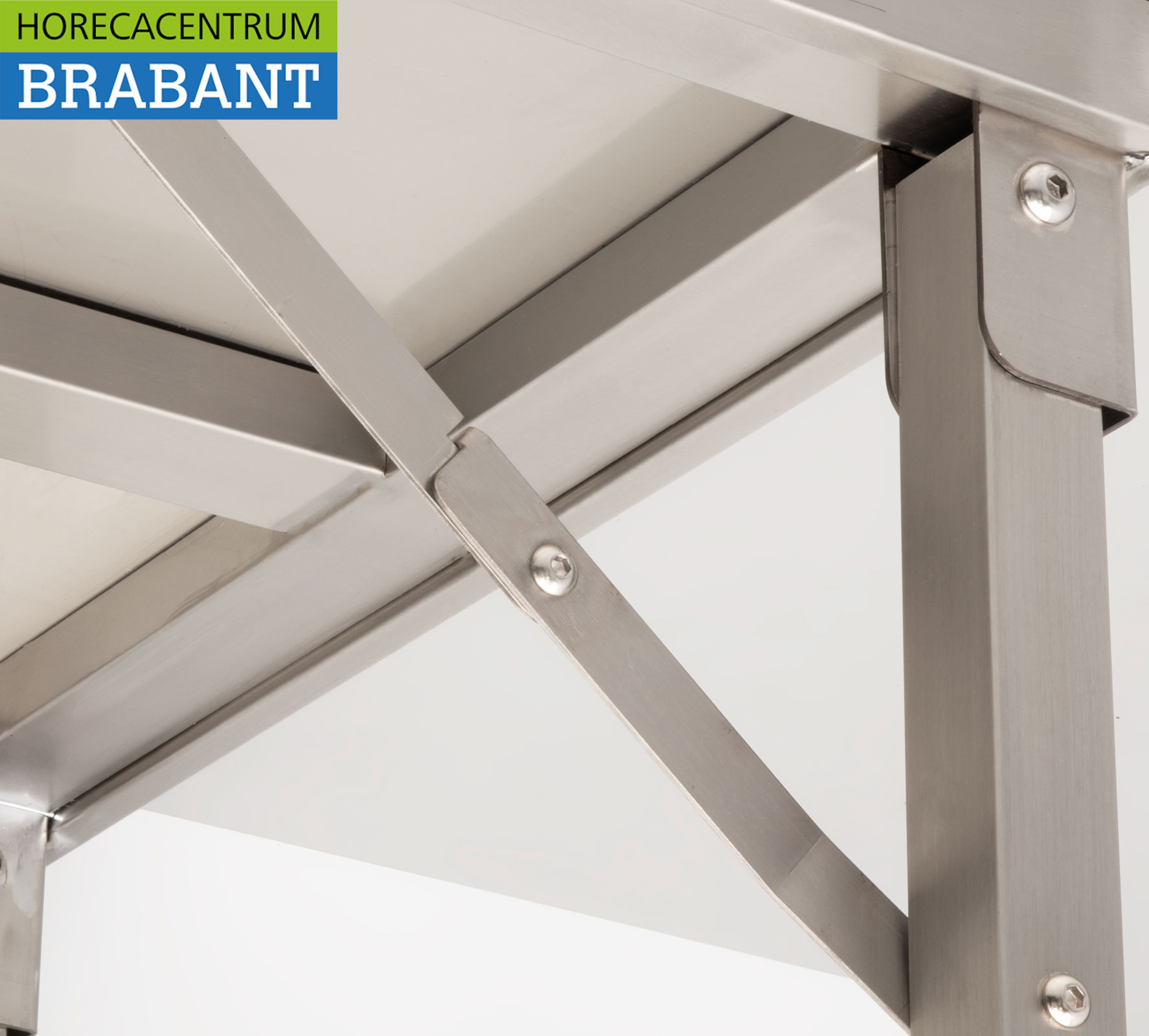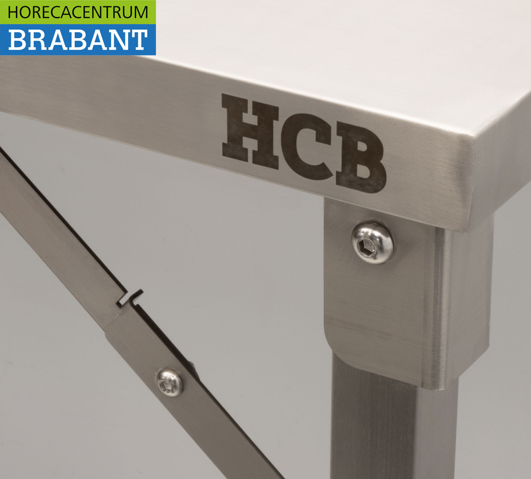HCB’s collapsible stainless steel work table is a practical and space-saving solution for professional kitchens, catering and events. The table is easy to fold and store when not in use. Thanks to the adjustable legs, the working height can be easily adjusted to the desired situation, ensuring optimal ease of use.