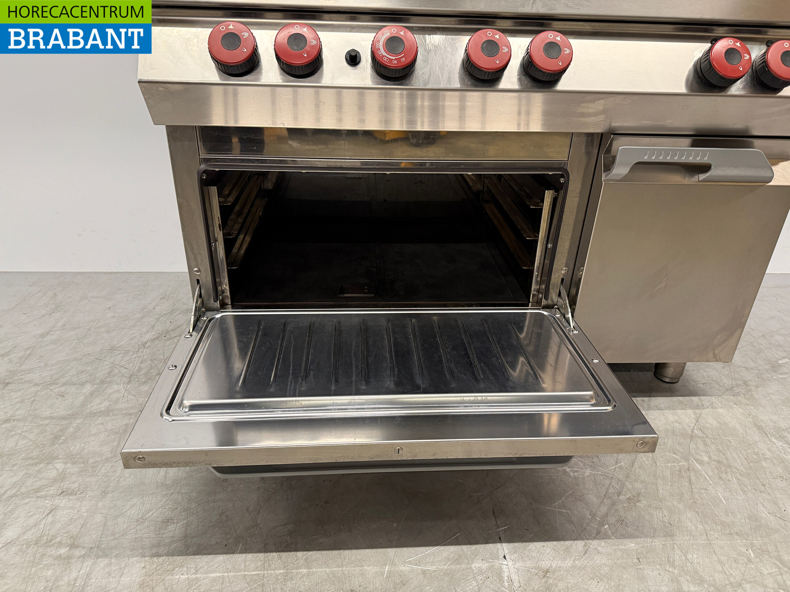 Equipped with 6 burners and an oven