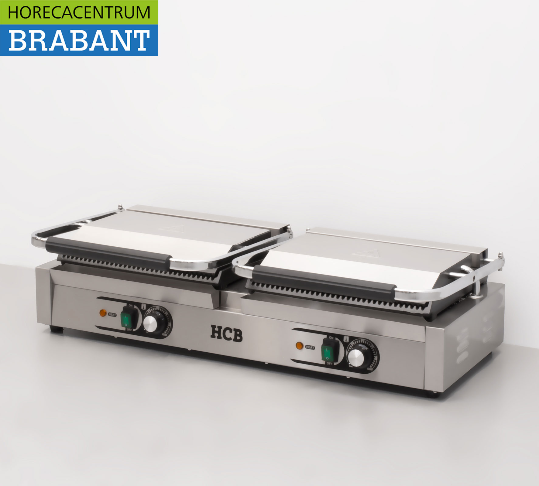 This professional stainless steel contact grill XXL from HCB is extremely suitable for intensive use in the catering industry. Thanks to the extra wide grilling surface and powerful double heating, this panini grill is ideal for quick and even grilling of paninis, meat, fish and vegetables.