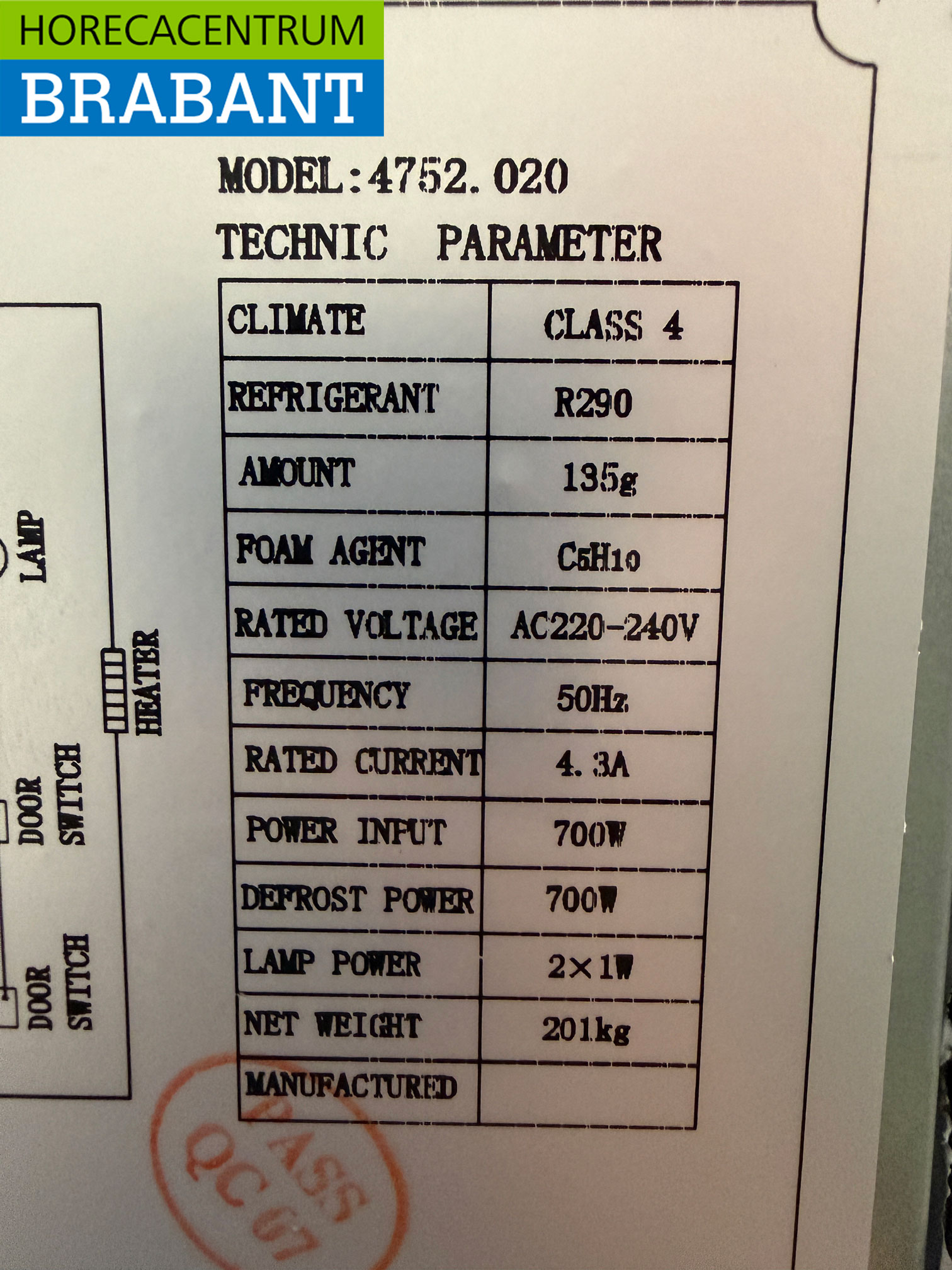 – Refrigerant: R290