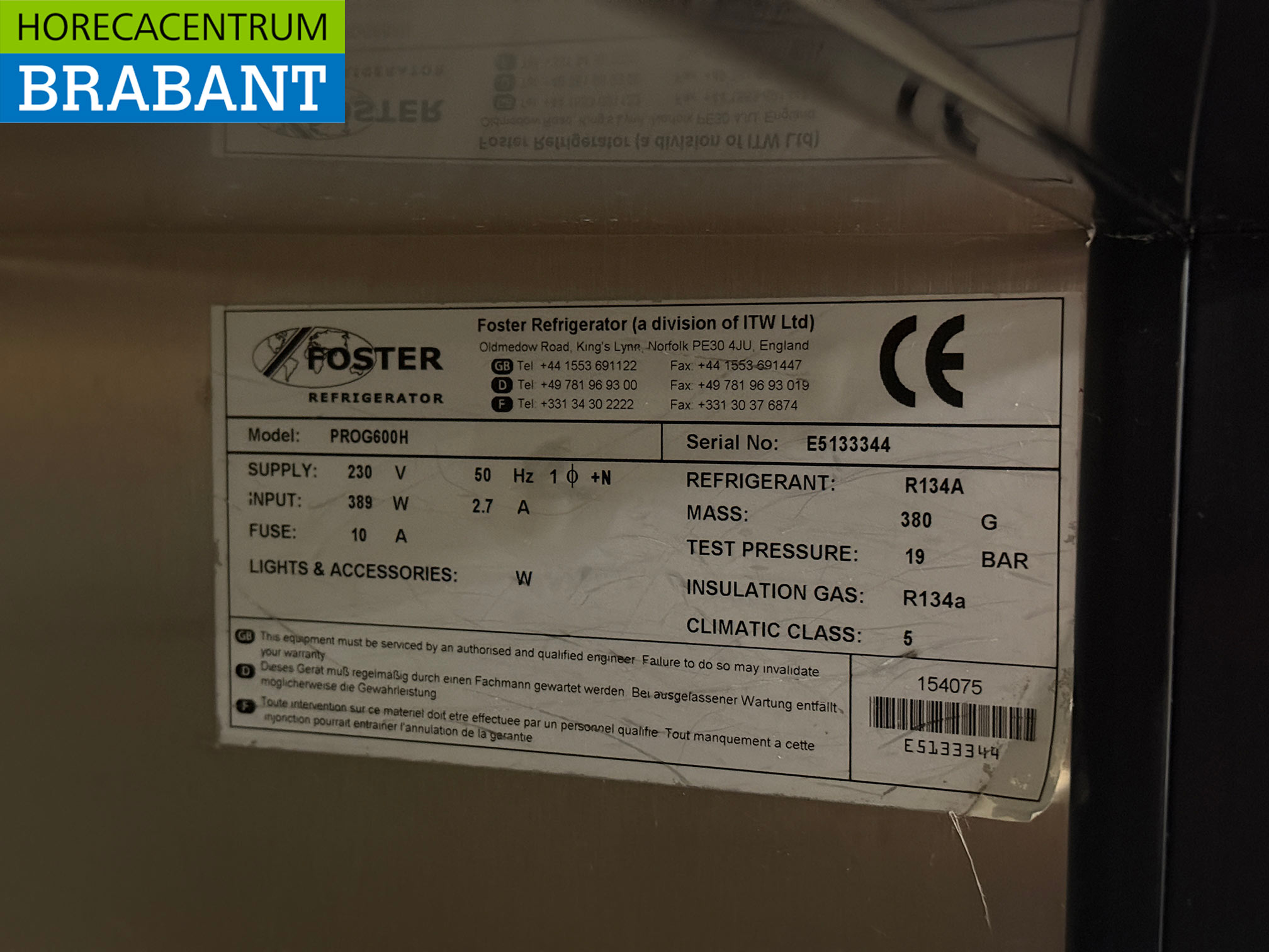 – Refrigerant: R134a