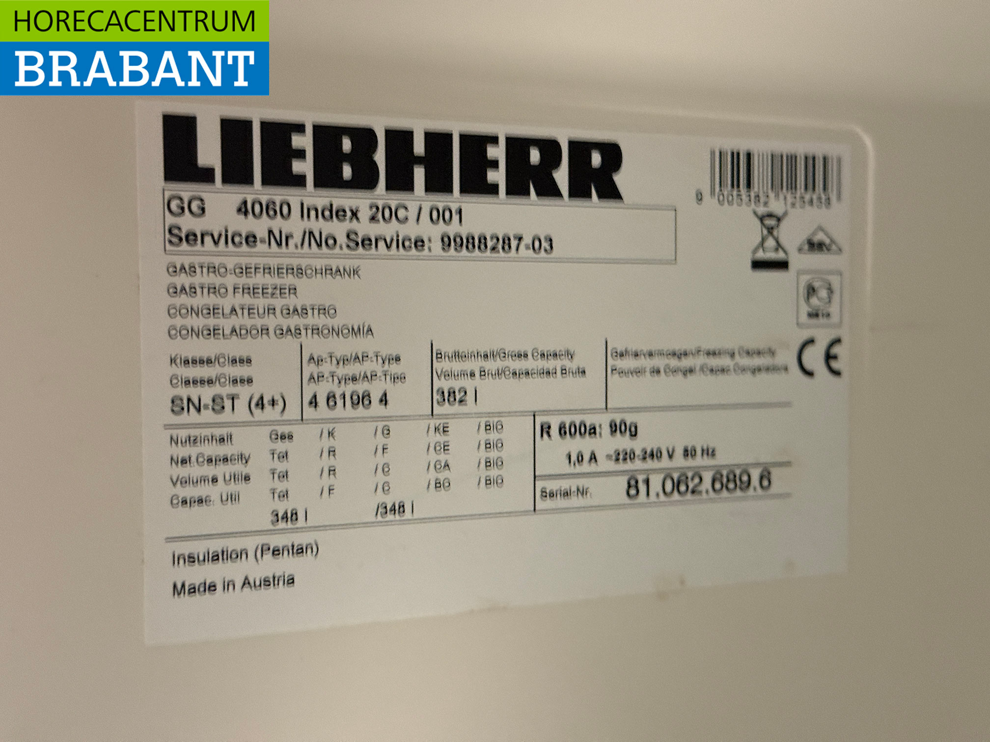 Stainless steel Liebherr Freezer 382 liters 230V Horeca