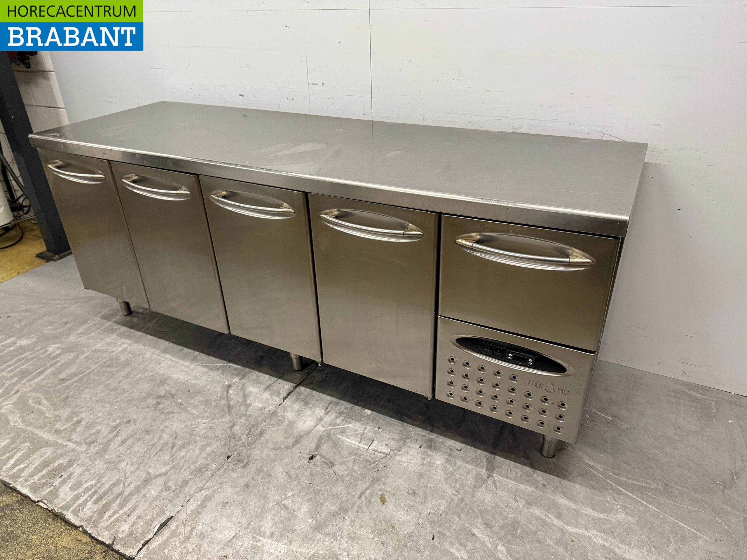 Equipped with 4 doors and 1 drawer (drawer not refrigerated)