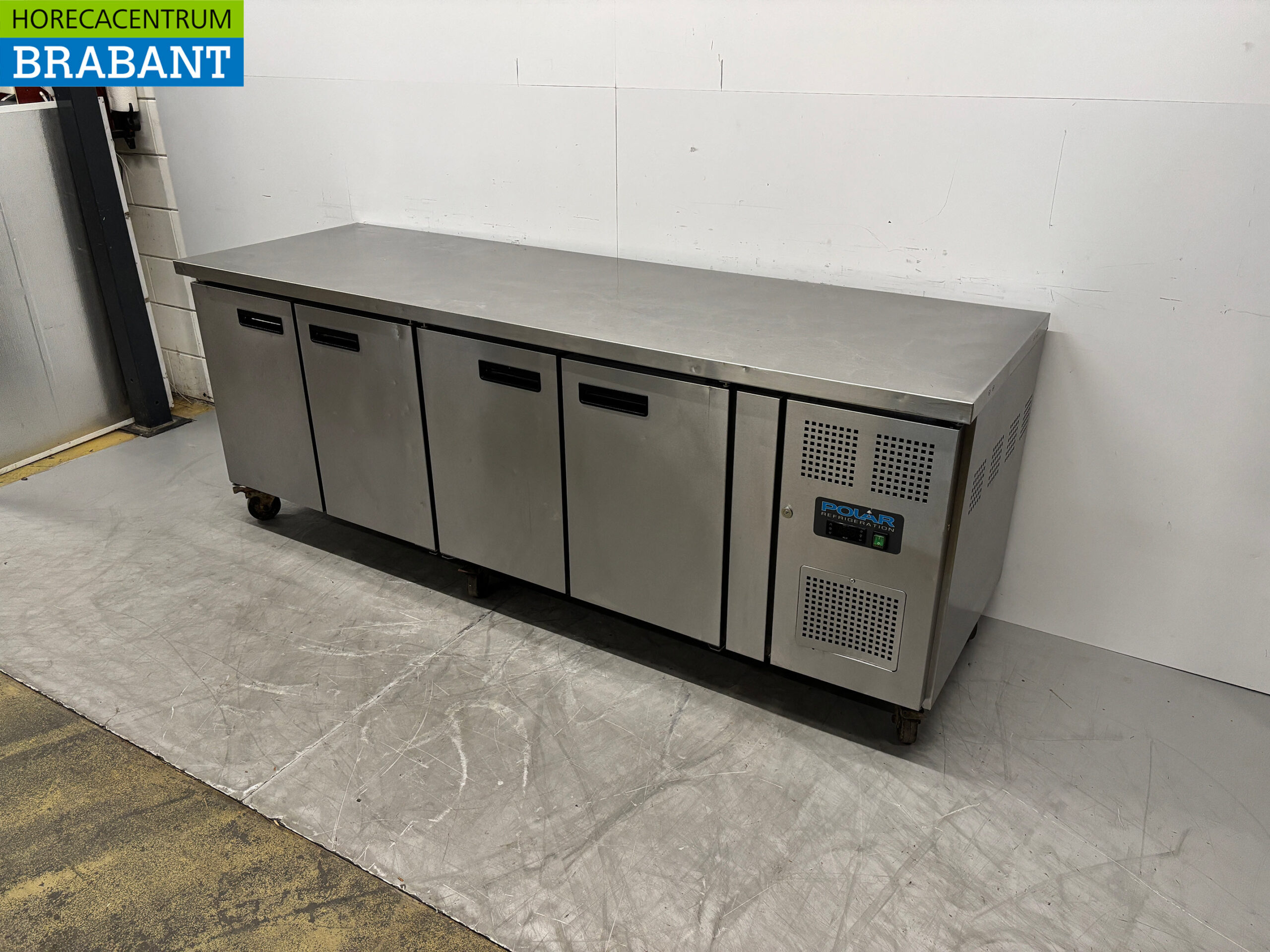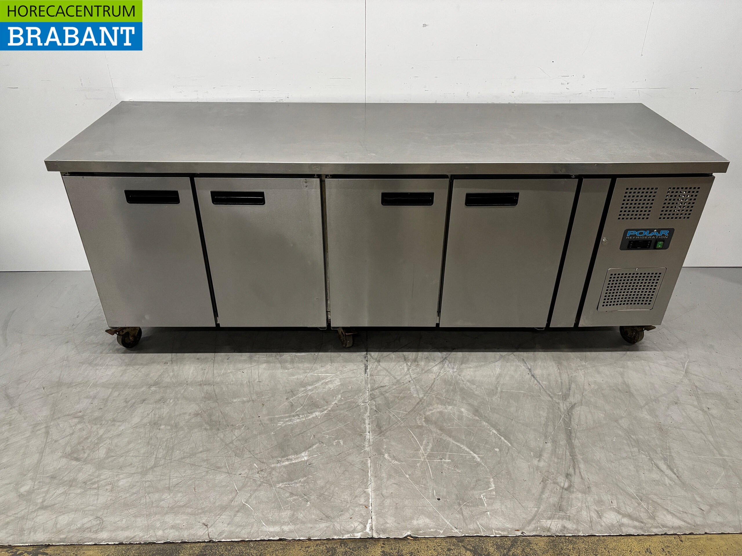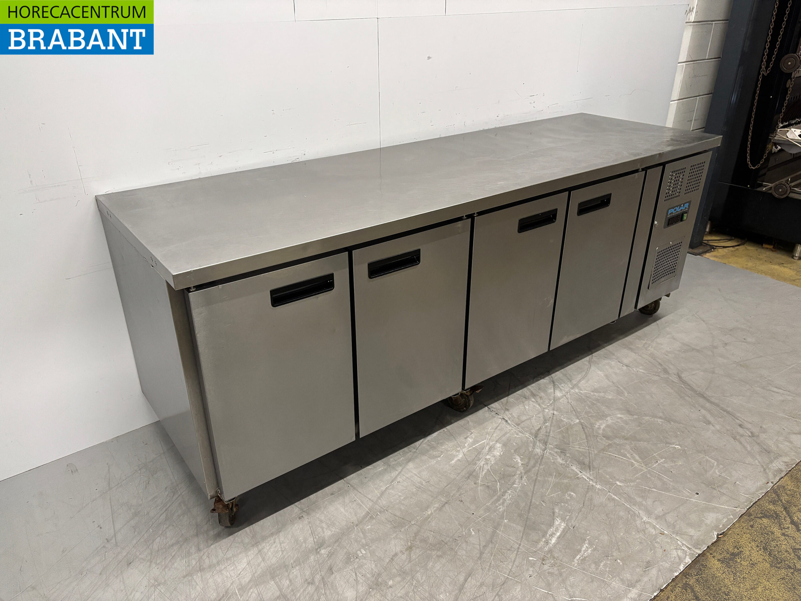 Stainless steel Polar Mobile Refrigerated Workbench 4 Doors 223 cm 230V Catering