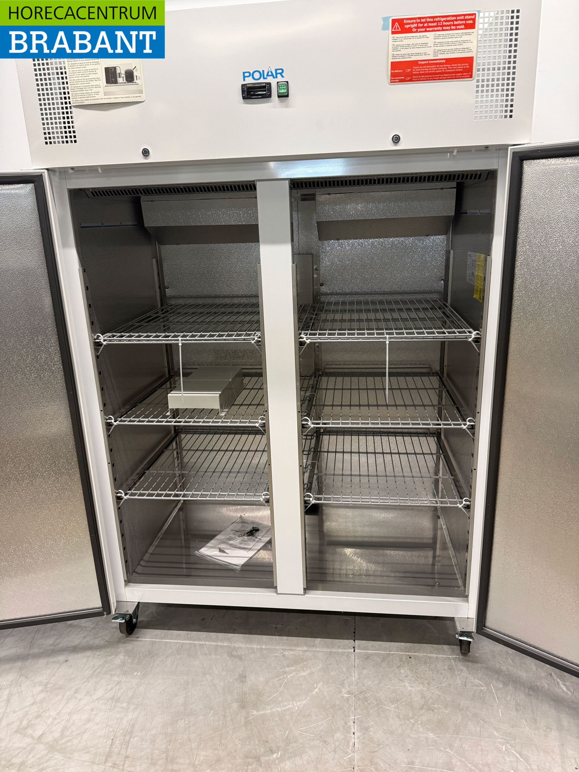 With its large 770L capacity, this double-door, white freezer from Polar is an excellent choice for the professional kitchen. It is designed for everyday use and features 6 sturdy, adjustable grids so you can make the most of its storage capacity. Instead of the grills, you can also place GN trays directly in the cooler, as it is suitable for GN 2/1 trays. The sturdy, self-closing doors (from 90°) are equipped with a lock and the door rubbers are removable.
