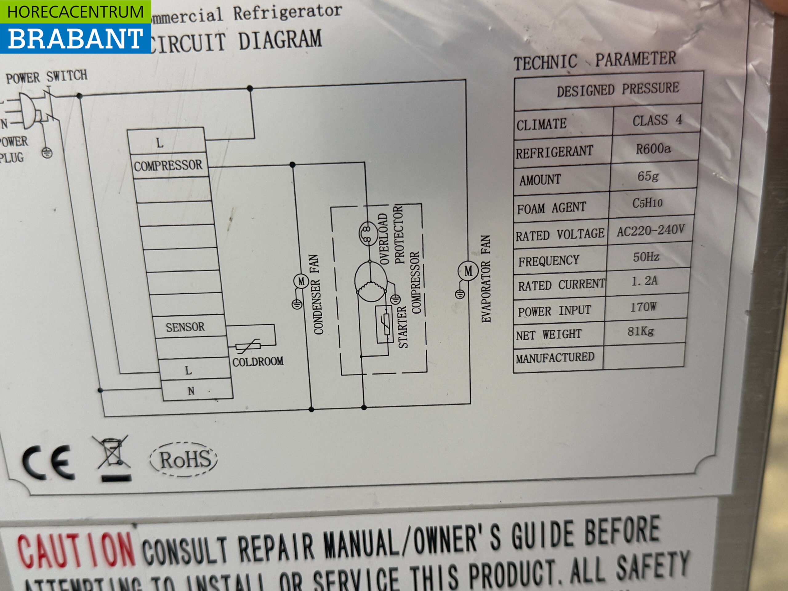– Refrigerant: R600a