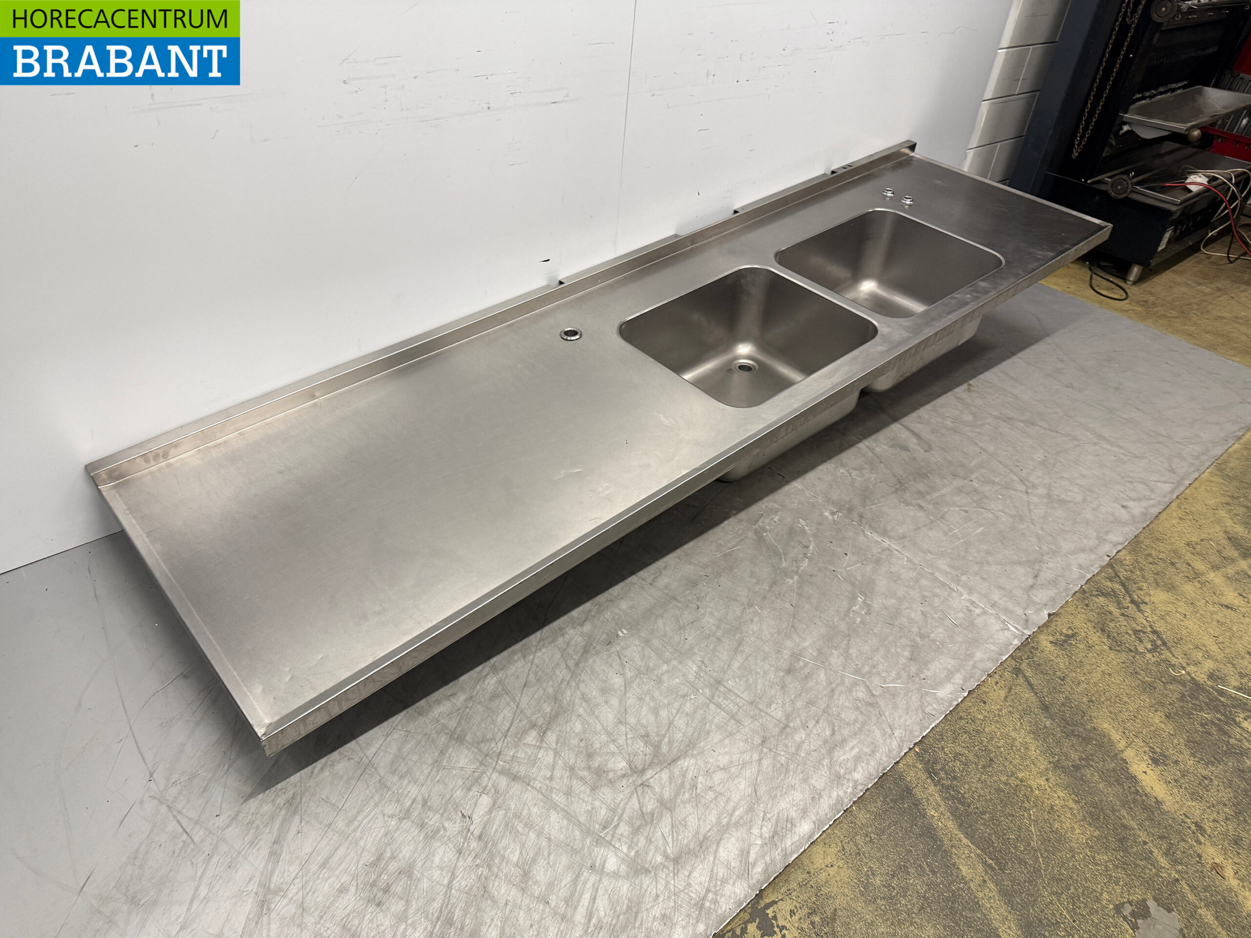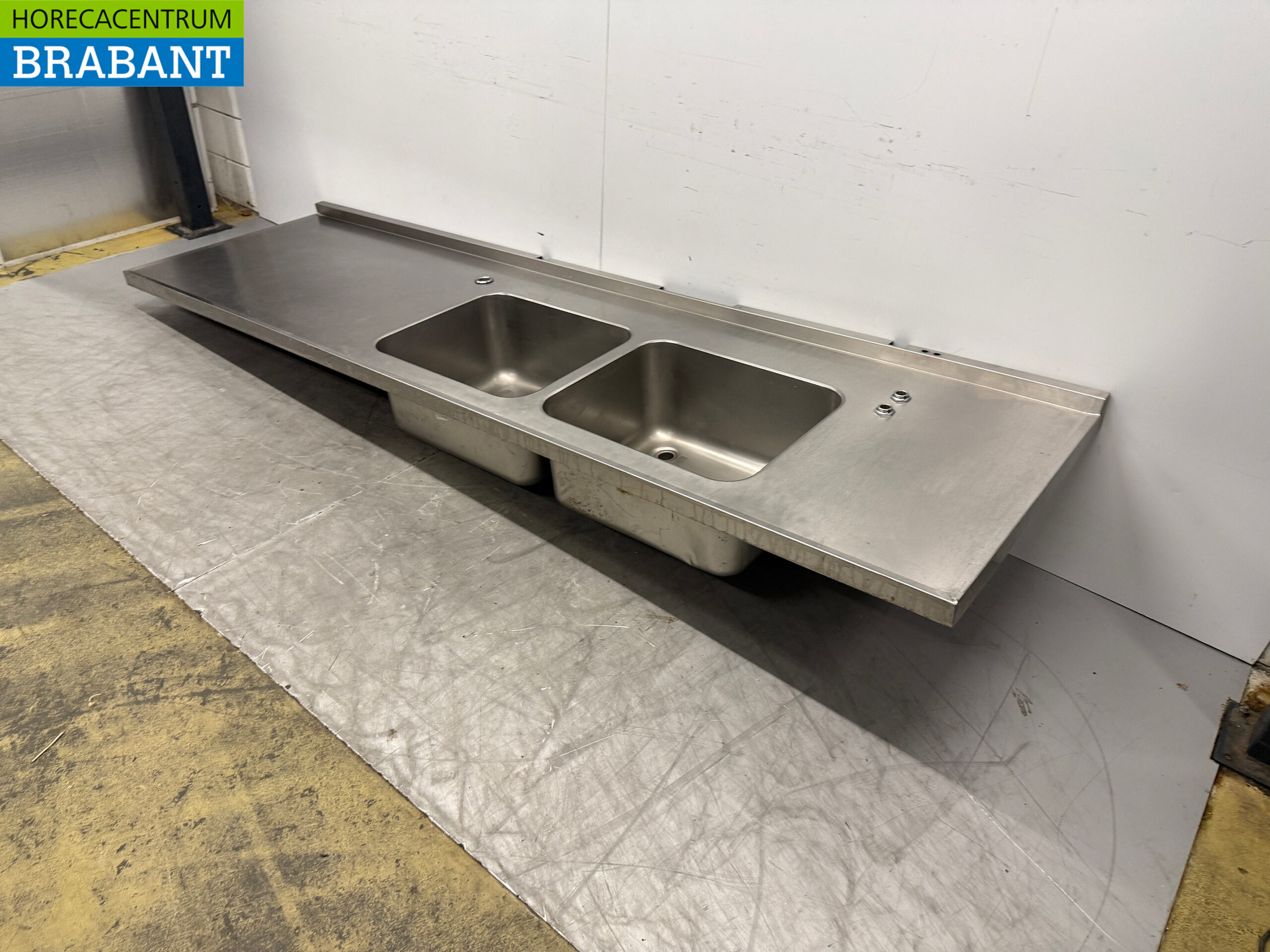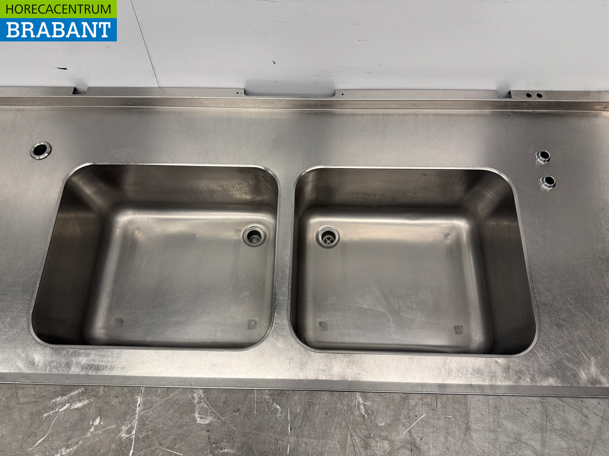 Stainless steel Sink Top with Double Sink 300 x 84 cm Catering